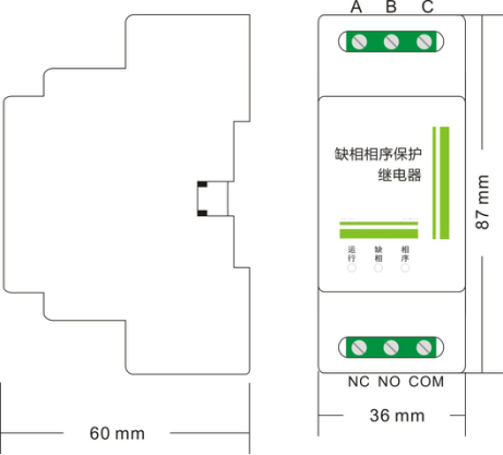 當(dāng)發(fā)生缺相、錯(cuò)相等故障時(shí),繼電器釋放,對應(yīng)的故障燈亮起。